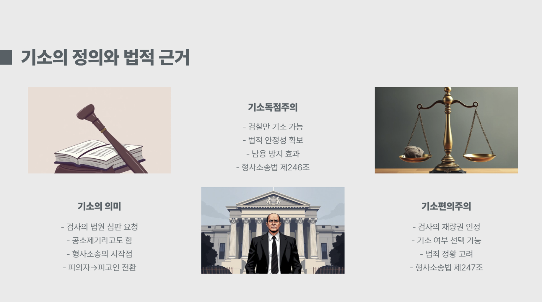 - 법적 안정성 확보: 국가 기관이 형사 재판을 주도하여 공정성을 유지