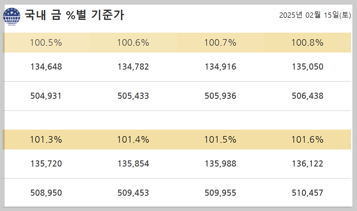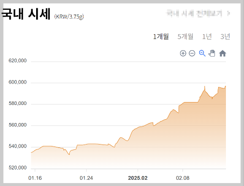 ※ 위 시세는 2025년 2월 15일 기준이며, 실시간 변동될 수 있습니다. 2025년 1월 이후 순금(24K)의 살 때 가격은 547,000원에서 590,000원으로 상승했으며, 팔 때 가격은 532,000원에서 575,000원으로 올랐습니다. 18K 금은 1월 대비 4.8% 상승하였고, 14K 금 역시 5.1% 상승하는 모습을 보였습니다.