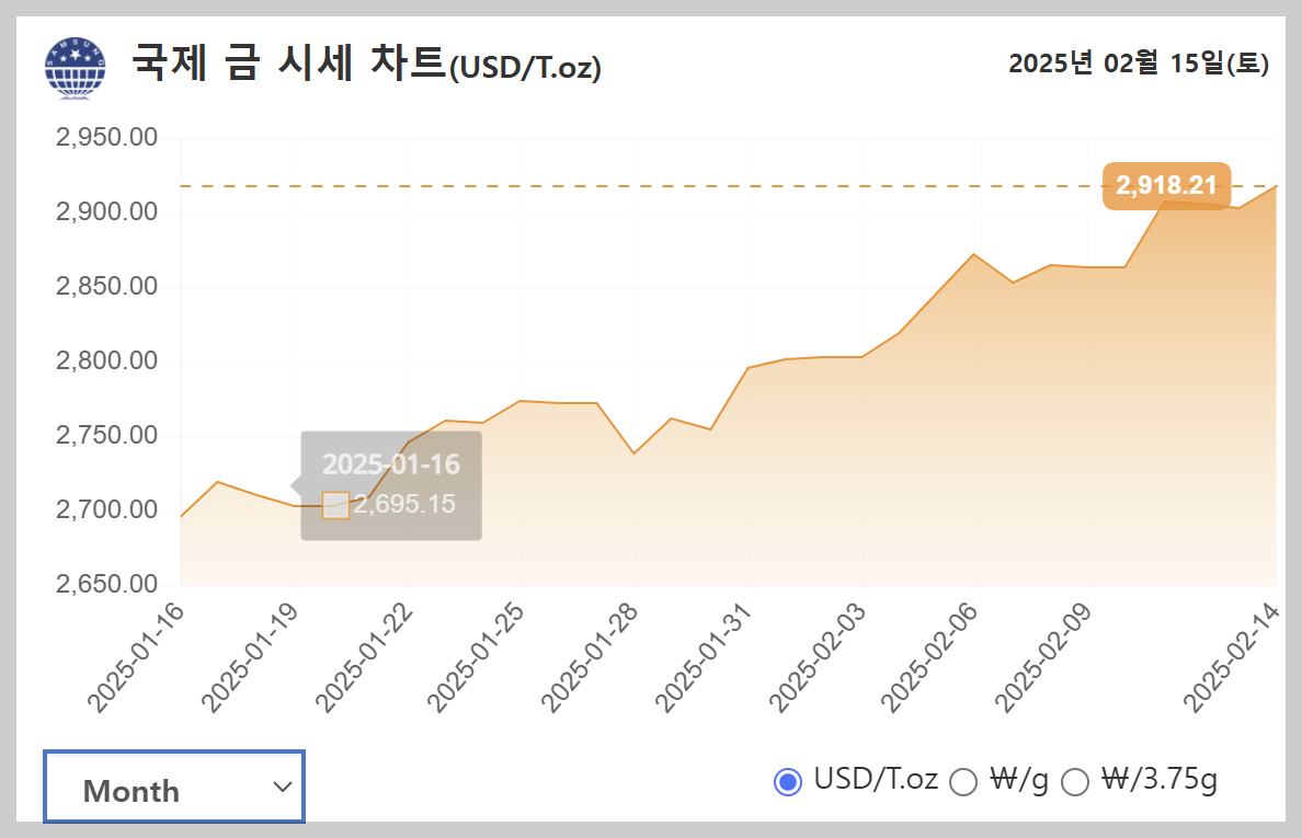 최근 금 시세가 다시 급등하며 많은 투자자의 관심을 받고 있습니다. 글로벌 경제의 불확실성, 인플레이션 상승, 지정학적 위기 등 다양한 요인이 금값 상승에 영향을 주고 있는데요. 이번 글에서는 2025년 2월 최신 금 시세, 금값 변동 원인, 실시간 금 시세 확인 방법, 그리고 향후 전망까지 자세히 살펴보겠습니다.