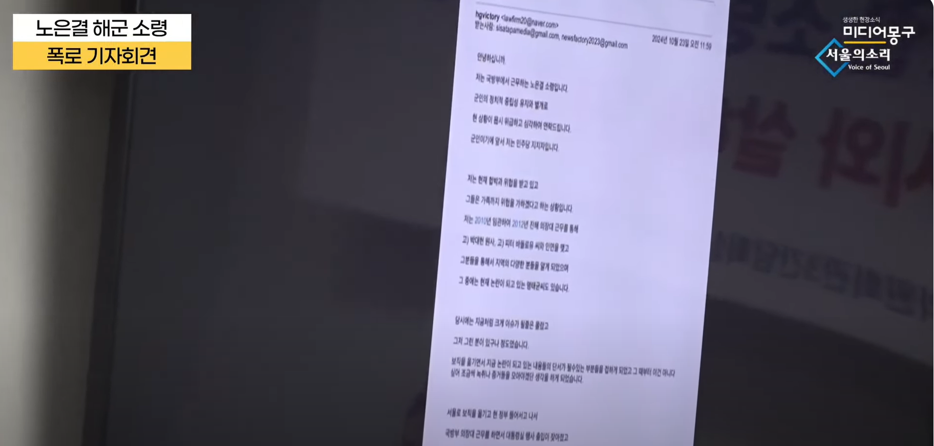 노은결 소령 기자회견 추가 폭로