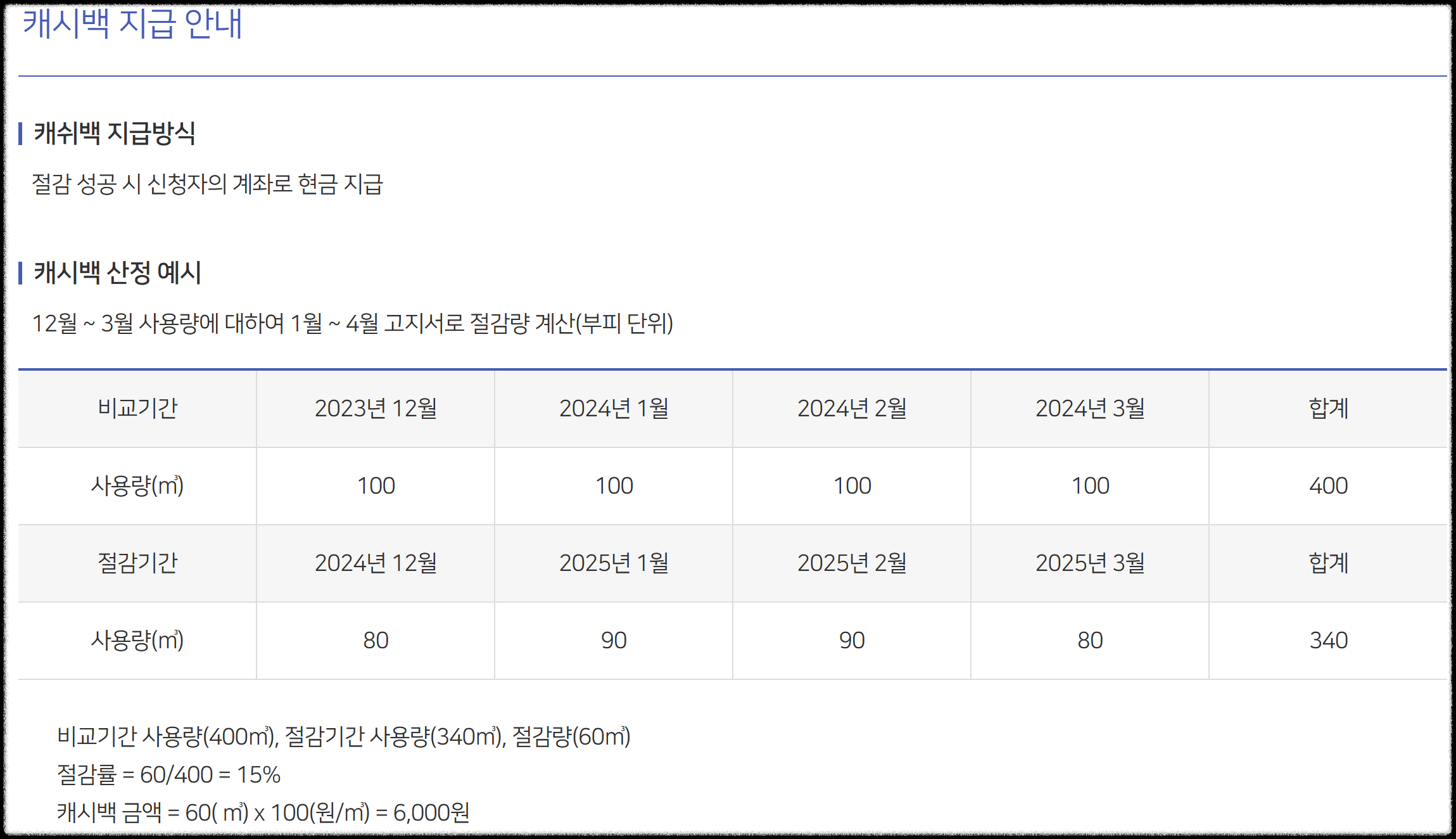 - 전년도 대비 3% 이상 줄이면 캐시백 지급