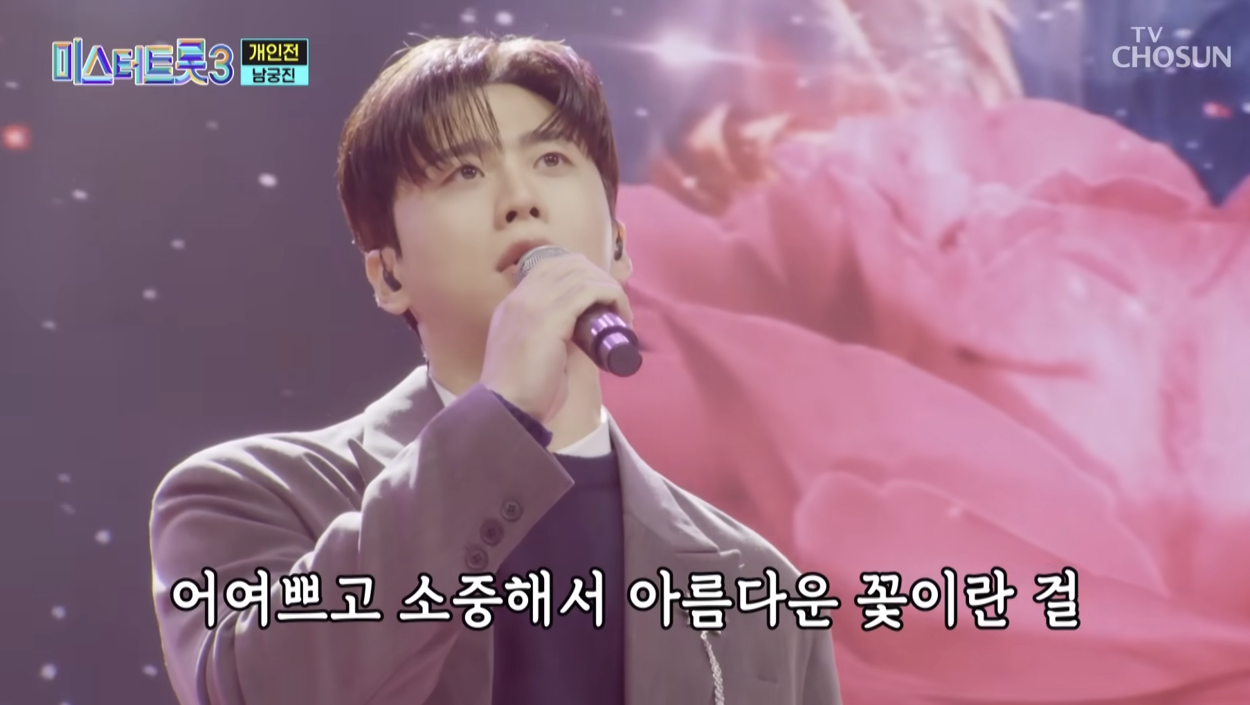 9) 남궁진은 '당신꽃'을 불러 잔잔하면서도 깊은 감성을 표현하는 무대를 만들었습니다. 무대 연출과 창법에서 담담하면서도 울림이 있는 분위기를 만들어내며 차분한 감동을 주었습니다.