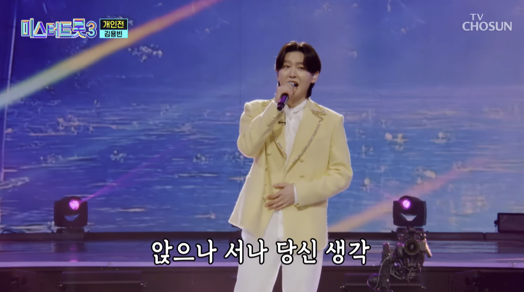 2) 김용빈은 '앉으나 서나 당신 생각'을 불러 감미로운 음색과 섬세한 감정 표현을 선보이며 국민대표단의 지지를 가장 많이 얻었습니다. 곡의 분위기를 잘 살려 감성적인 무대를 만들어냈다는 평가를 받았습니다.