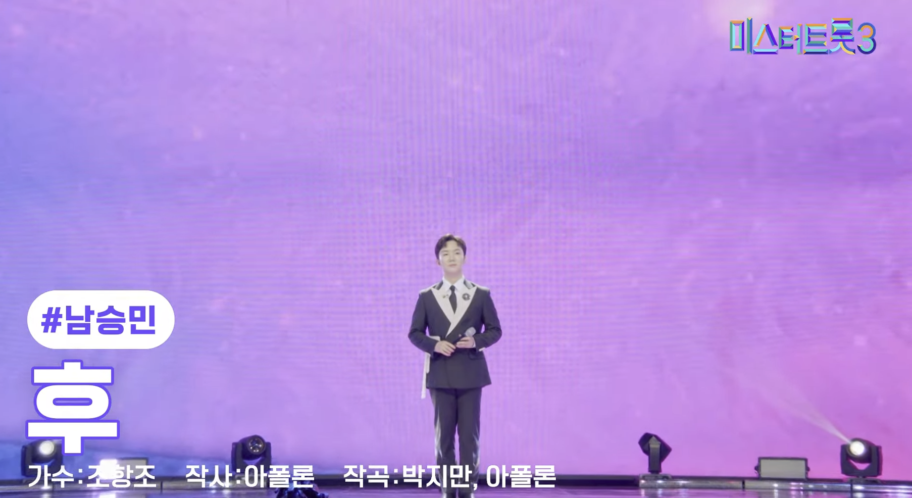 7) 남승민은 '후'를 선곡해 안정된 가창력과 노련한 무대 매너를 선보였습니다. 긴장감 없이 능숙하게 무대를 이끌어나가며, 감정을 과하지 않게 조절하는 능력이 돋보였다는 평가를 받았습니다.