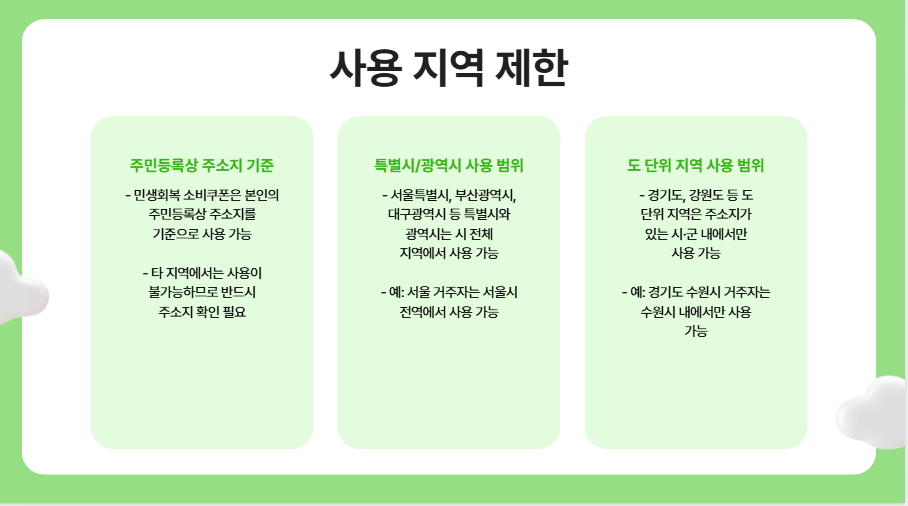 - 사용 지역: 본인의 주민등록상 주소지 기준