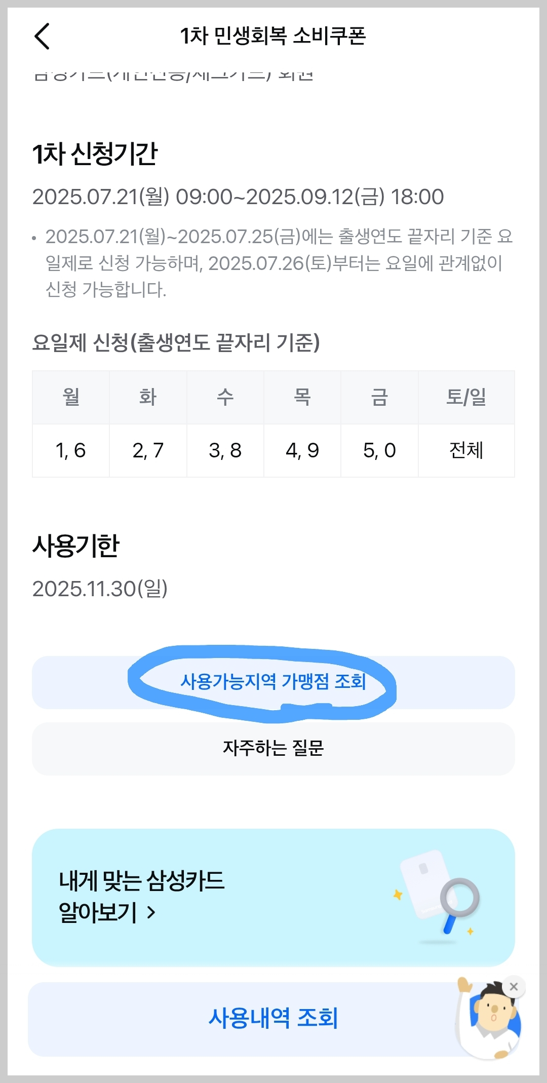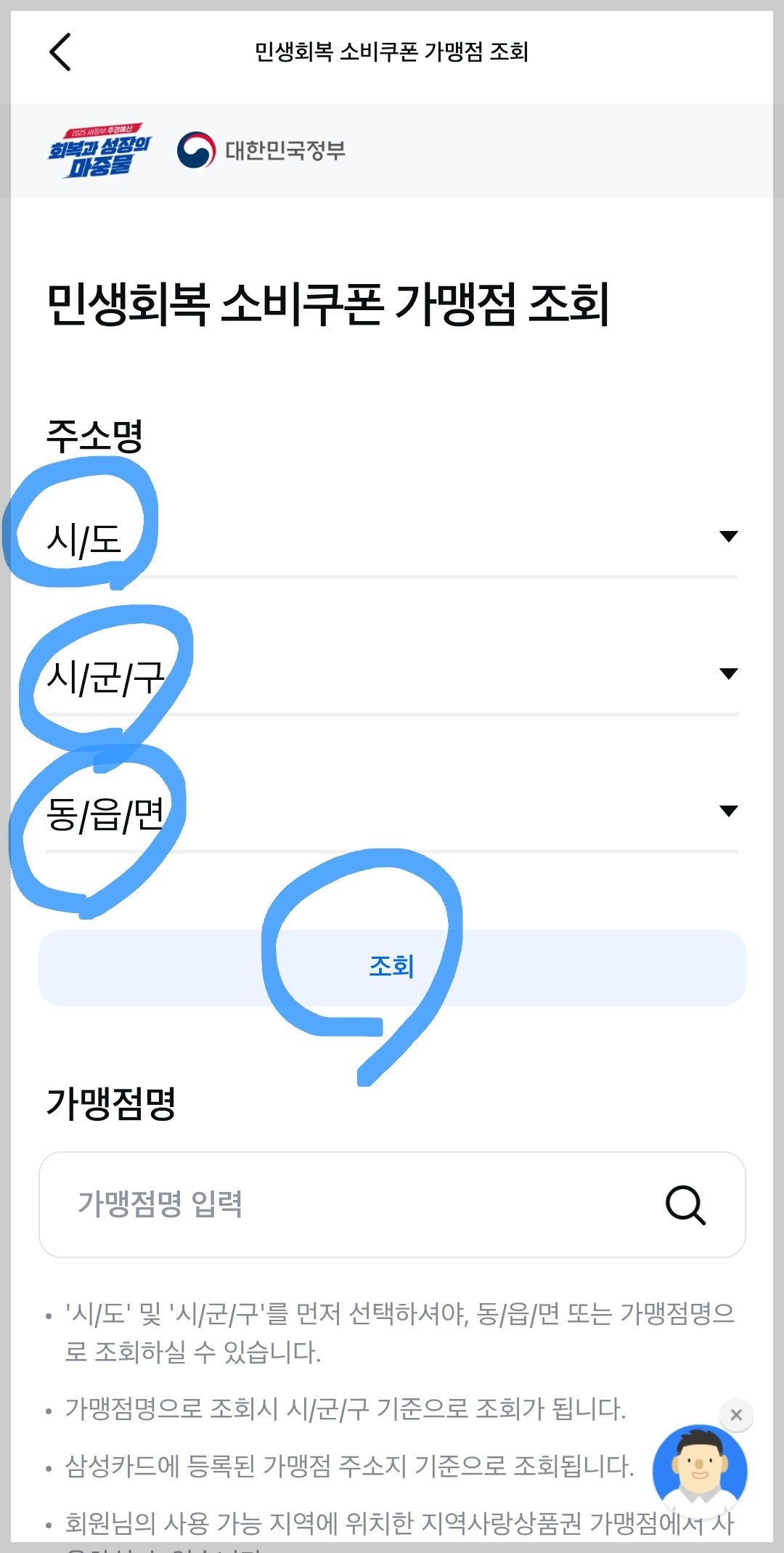 - ‘민생회복 소비쿠폰 사용처’ 메뉴 클릭