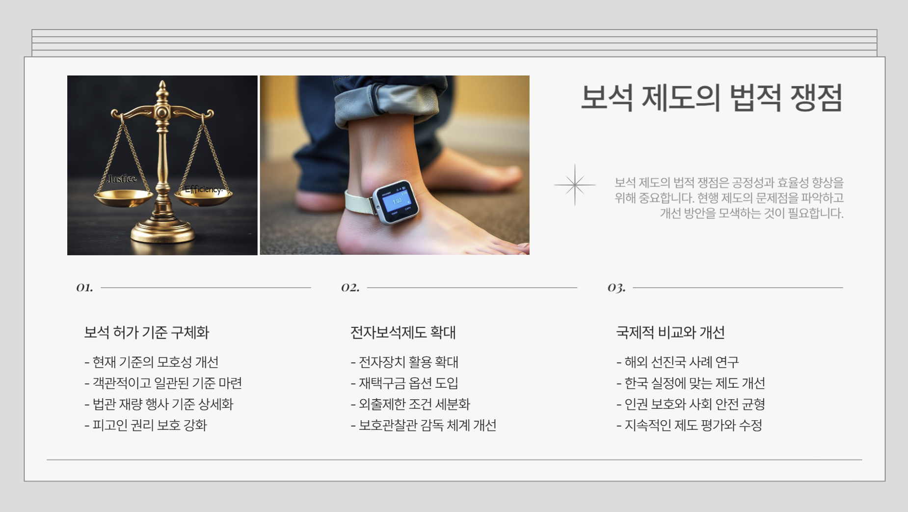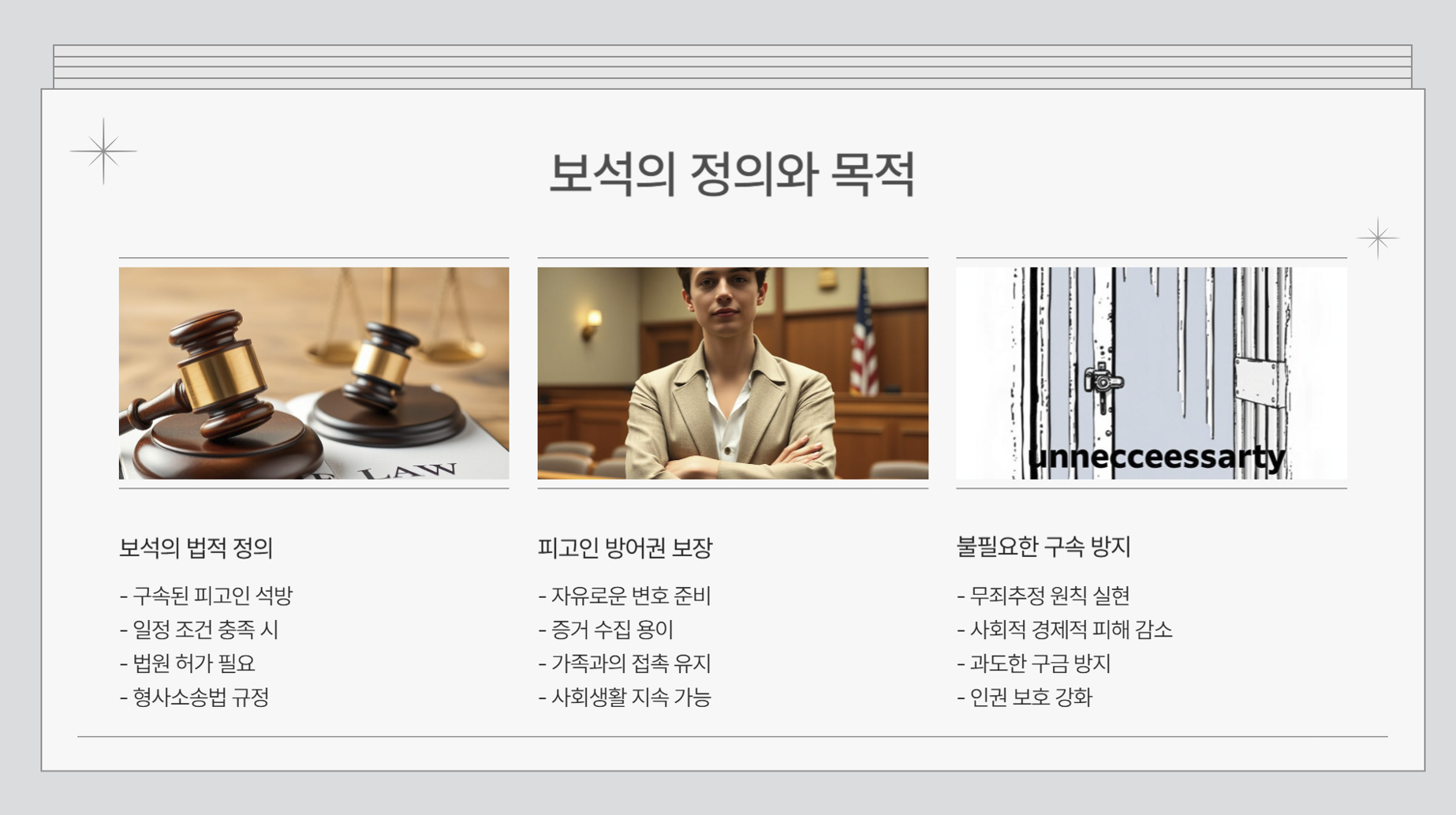 보석은 피고인의 방어권을 보장하고, 불필요한 구속으로 인한 사회적·경제적 피해를 줄이기 위해 존재하는 제도입니다.