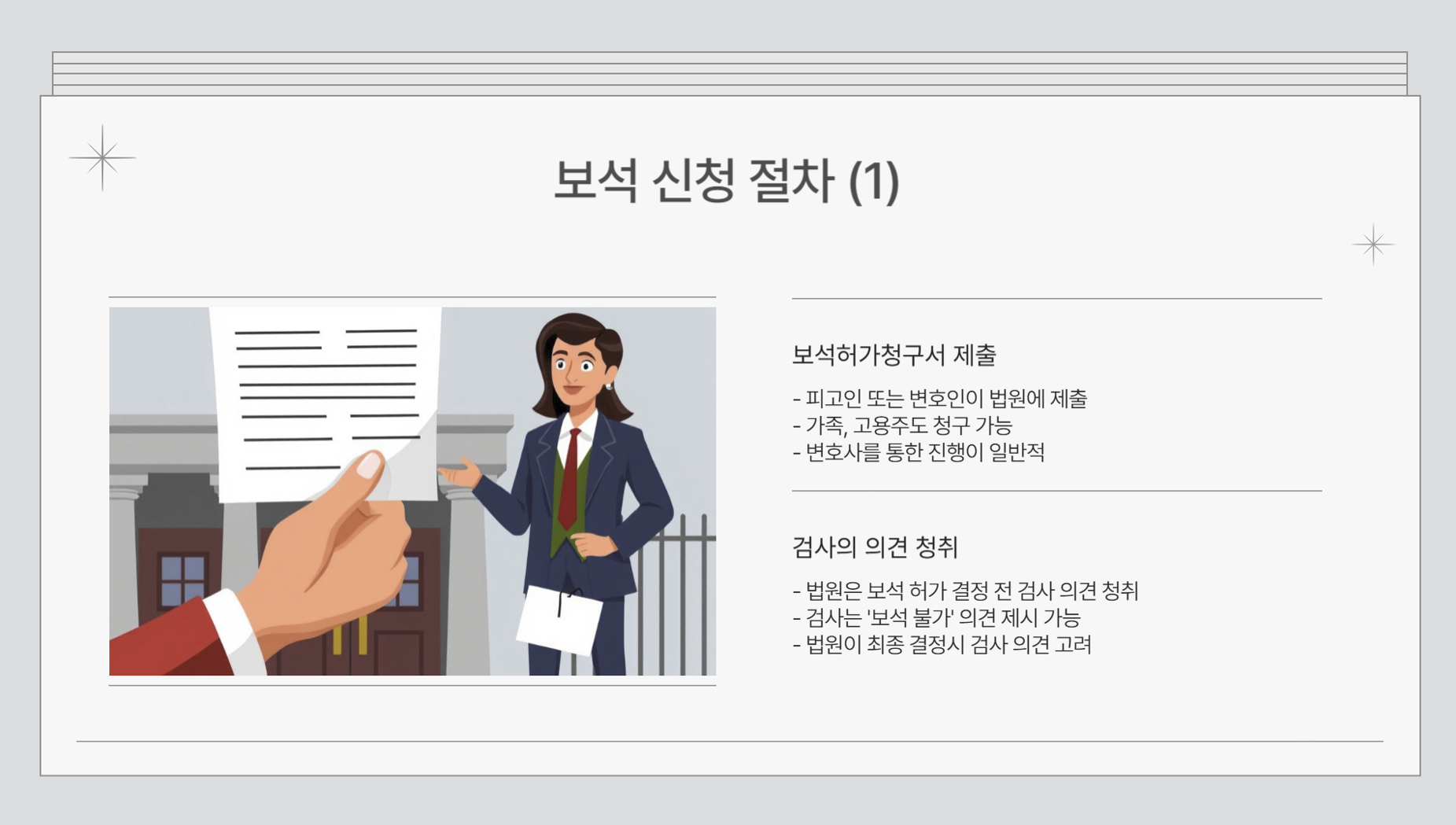 그렇다면, 누가 보석을 신청할 수 있고, 법원이 보석 허가를 내주는 기준은 무엇일까요? 🤔