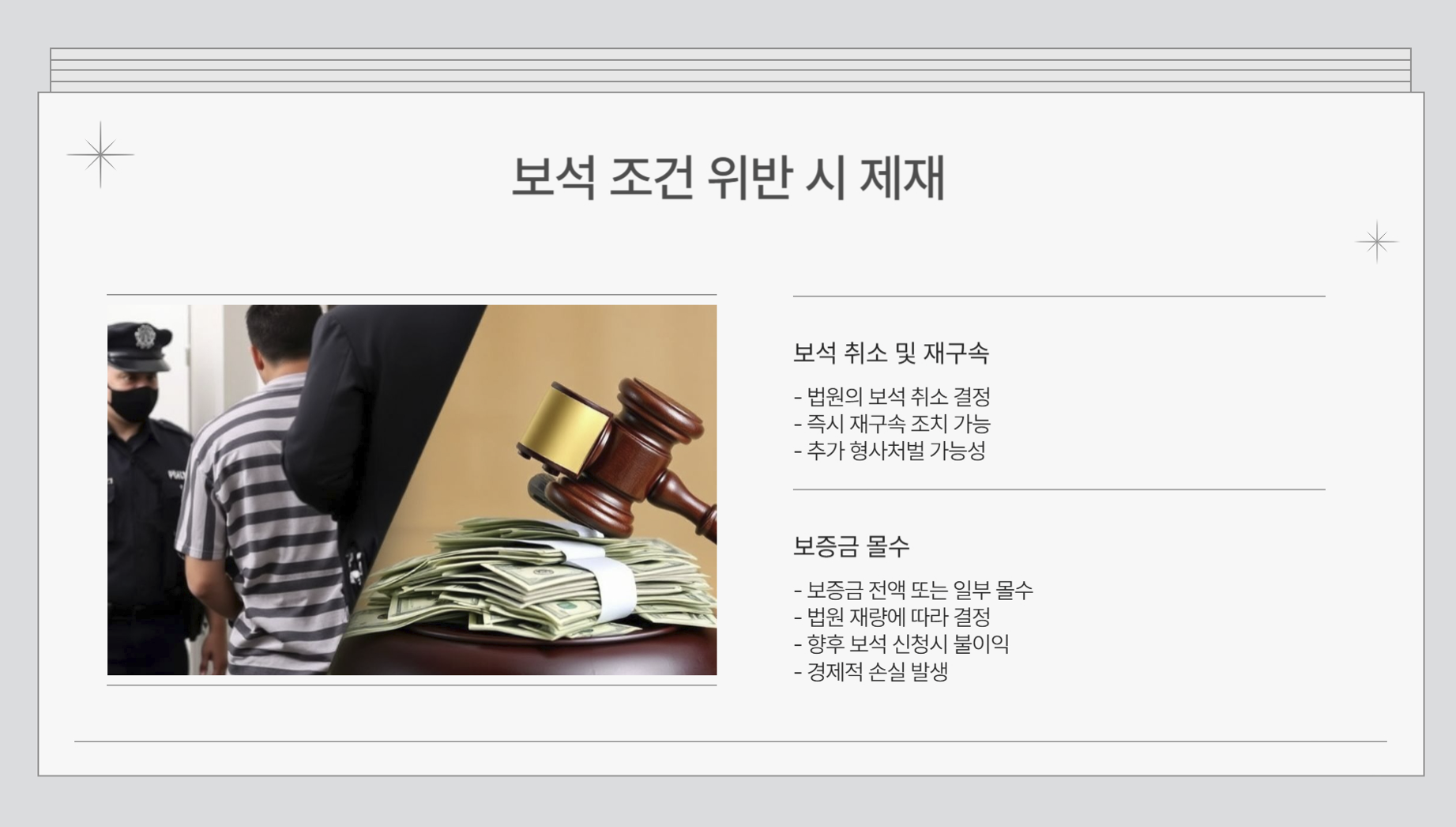 법원이 보석을 허가할 때, 재판 출석과 도주 방지를 위한 다양한 조건을 부과할 수 있습니다.