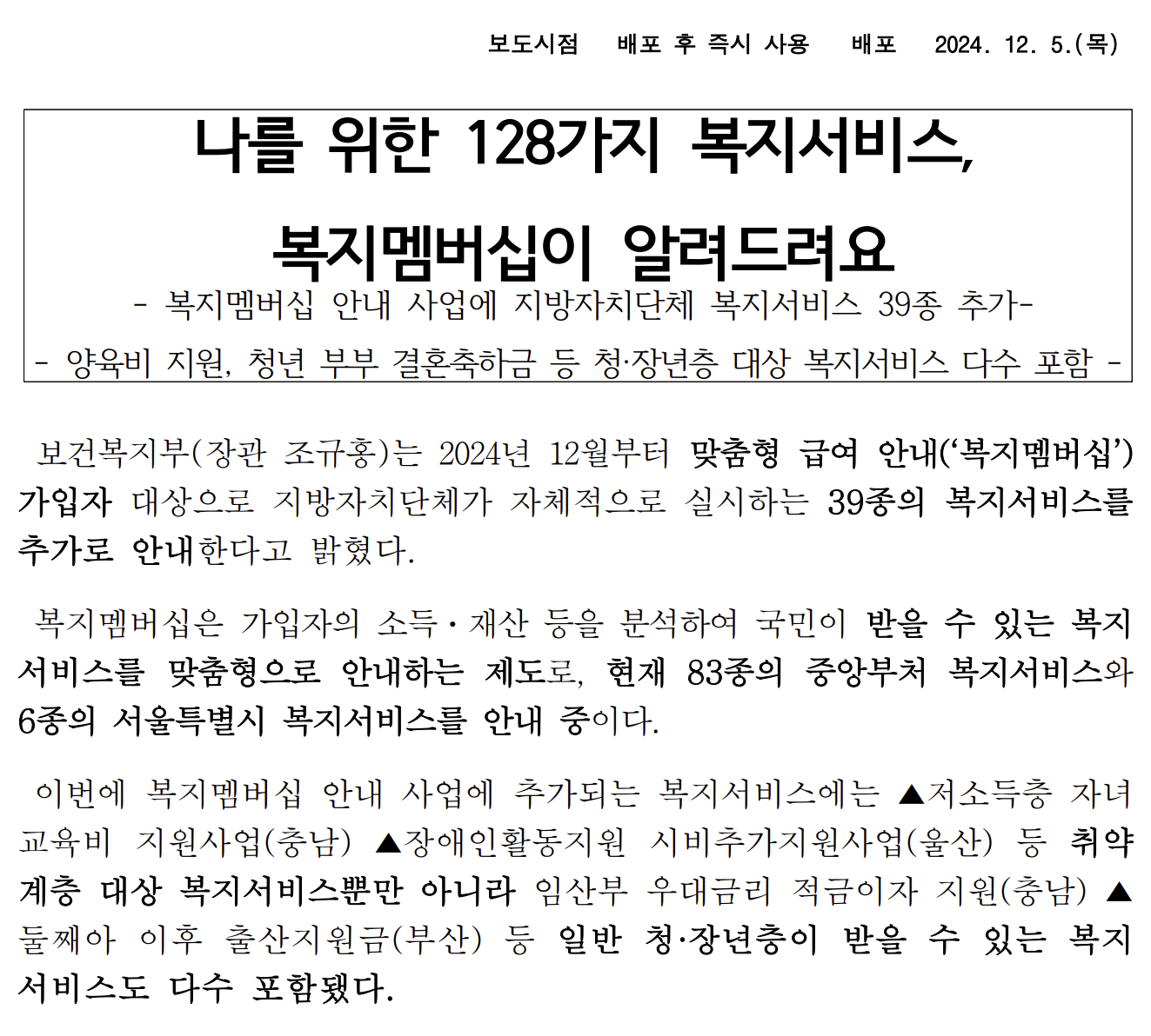 복지멤버십은 국민이 받을 수 있는 복지 혜택을 놓치지 않도록 돕는 중요한 제도입니다. 또한, 위기가구를 발굴하고 지자체가 직접 지원할 수 있는 체계를 마련해 복지의 접근성을 높이고 사회 안전망을 강화하고 있습니다.