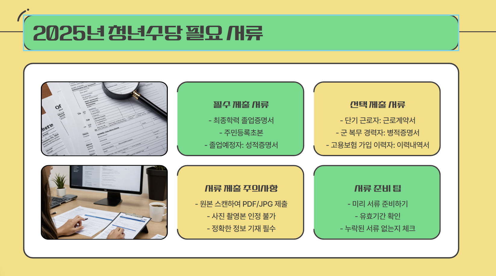 📢 중요: 모든 서류는 원본을 스캔하여 PDF 또는 JPG 형식으로 제출해야 하며, 사진 촬영본은 인정되지 않습니다.