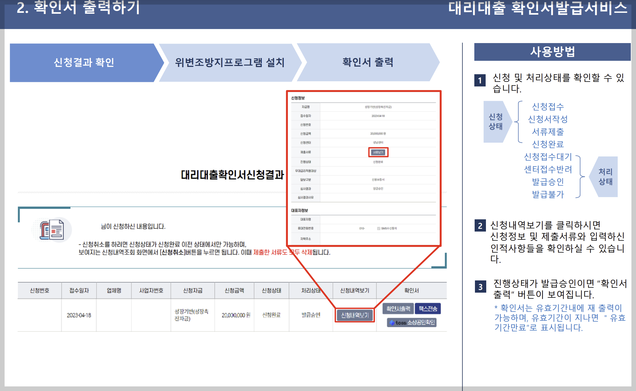2. 이후 은행에서 추가 심사를 진행하며, 최종 승인이 되면 은행을 통해 대출이 실행됩니다.