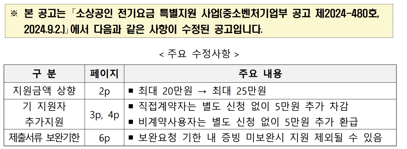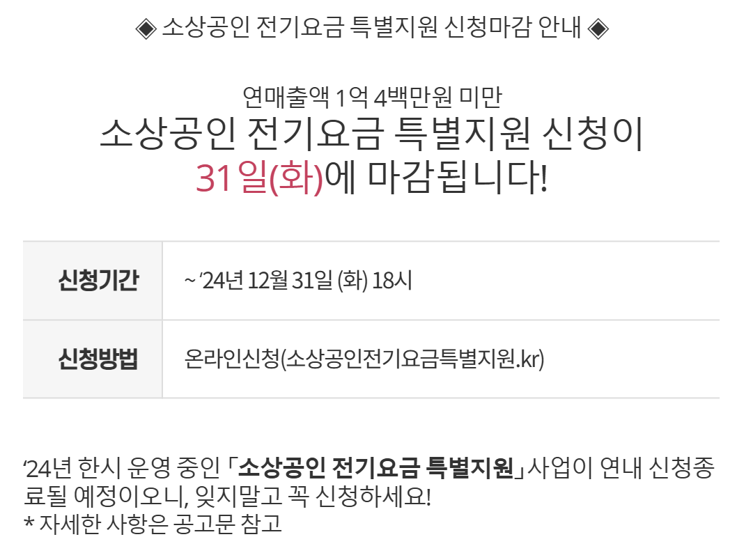 - 사업자당 최대 20~25만 원의 전기요금을 지원합니다.