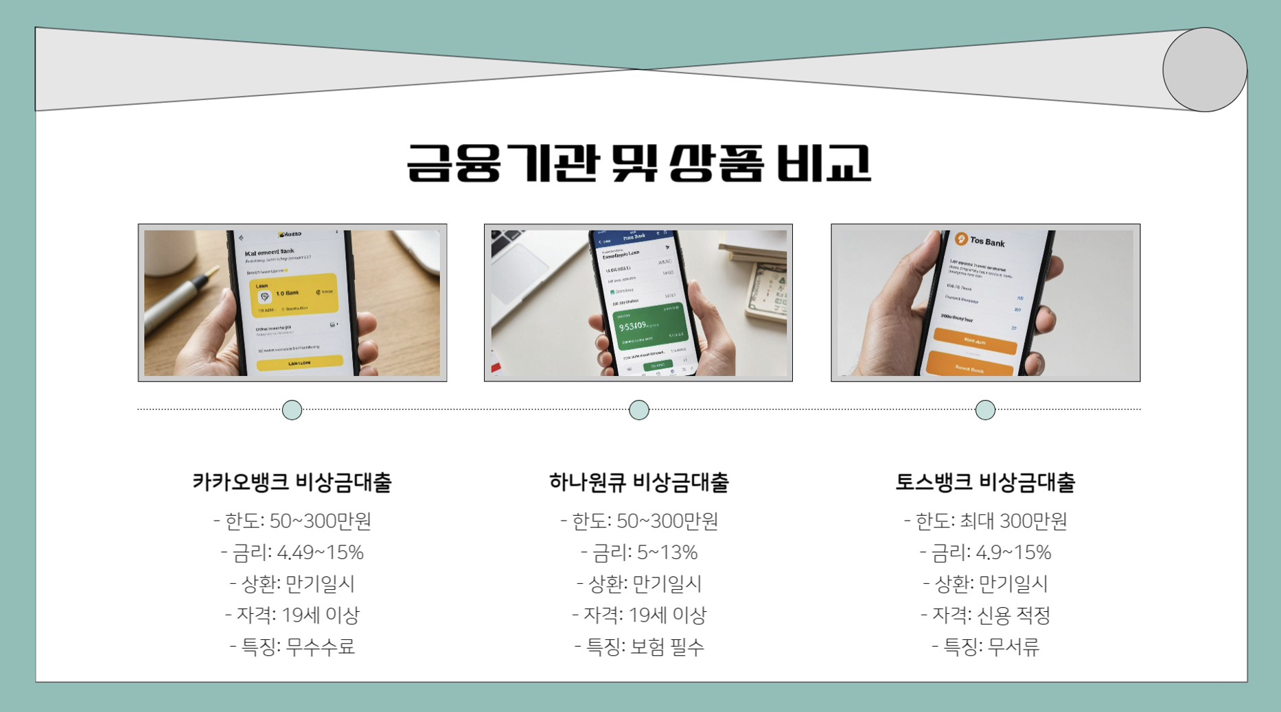 1. 소액대출 300만 원 받을 수 있는 금융기관 및 상품 비교