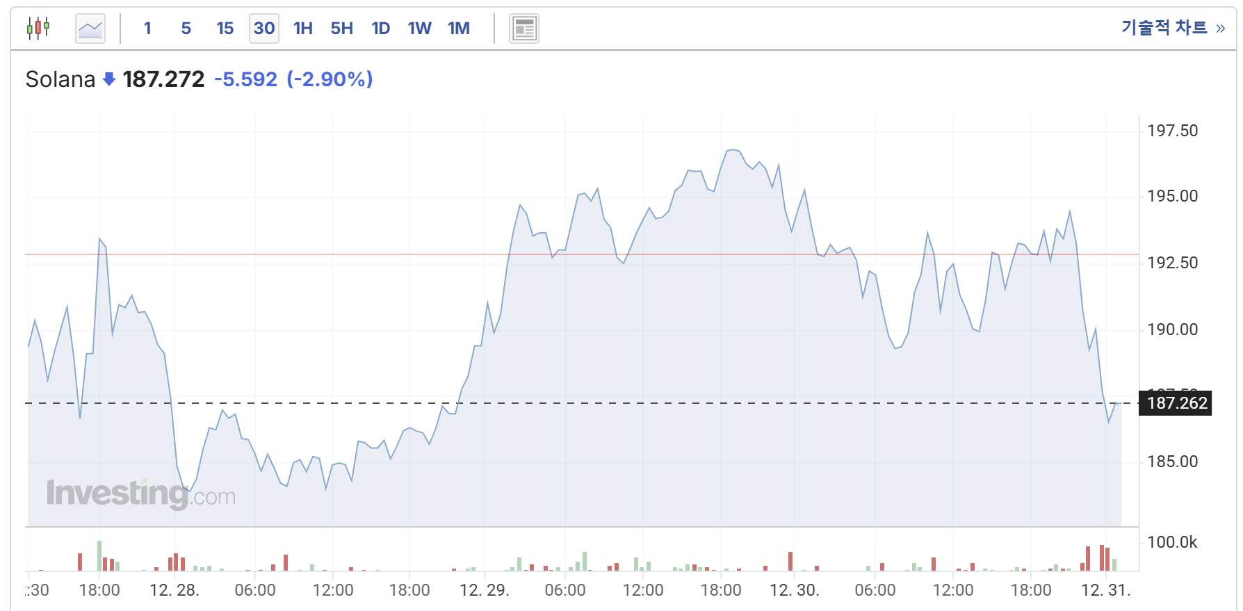 현재 솔라나는 ₩275,000에서 ₩293,000 사이에서 거래되고 있습니다. 이는 달러 기준으로 약 $188에서 $191 수준입니다. 최근 24시간 동안 거래량은 약 ₩5.2조에 달하며, 시가총액은 약 ₩139조로 추산됩니다. 이러한 시세는 솔라나의 기술적 발전과 시장에서의 높은 수요를 반영하고 있습니다.