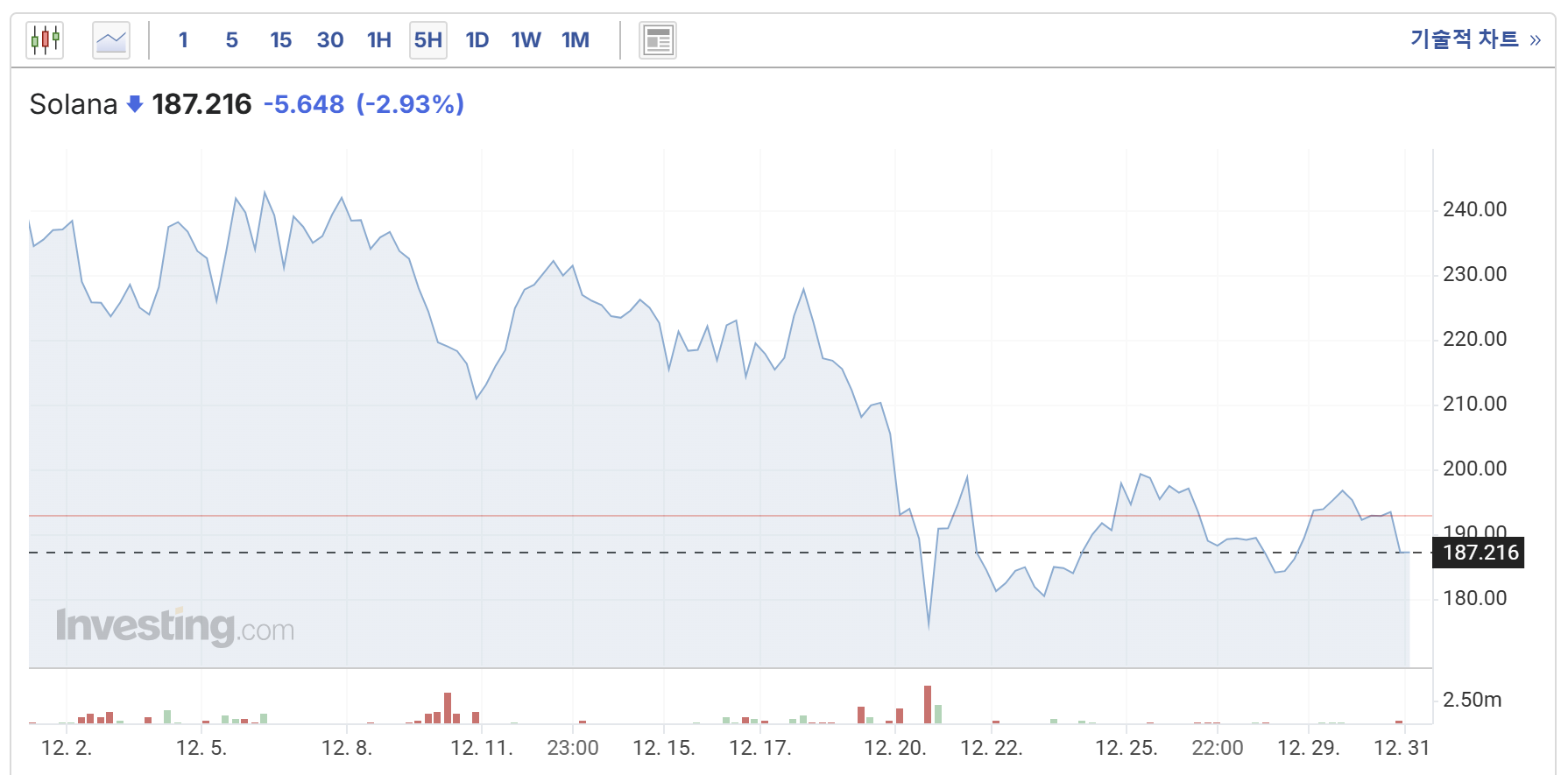 2024년 12월 현재 솔라나의 시세