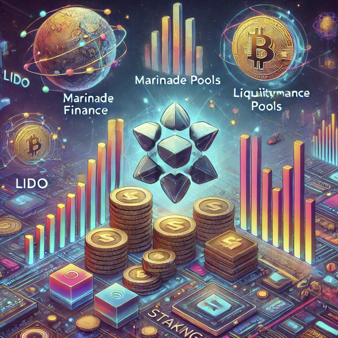 - 유동성 스테이킹: Marinade Finance와 Lido는 SOL 토큰 스테이킹과 이를 기반으로 한 추가적인 DeFi 활용을 지원합니다.