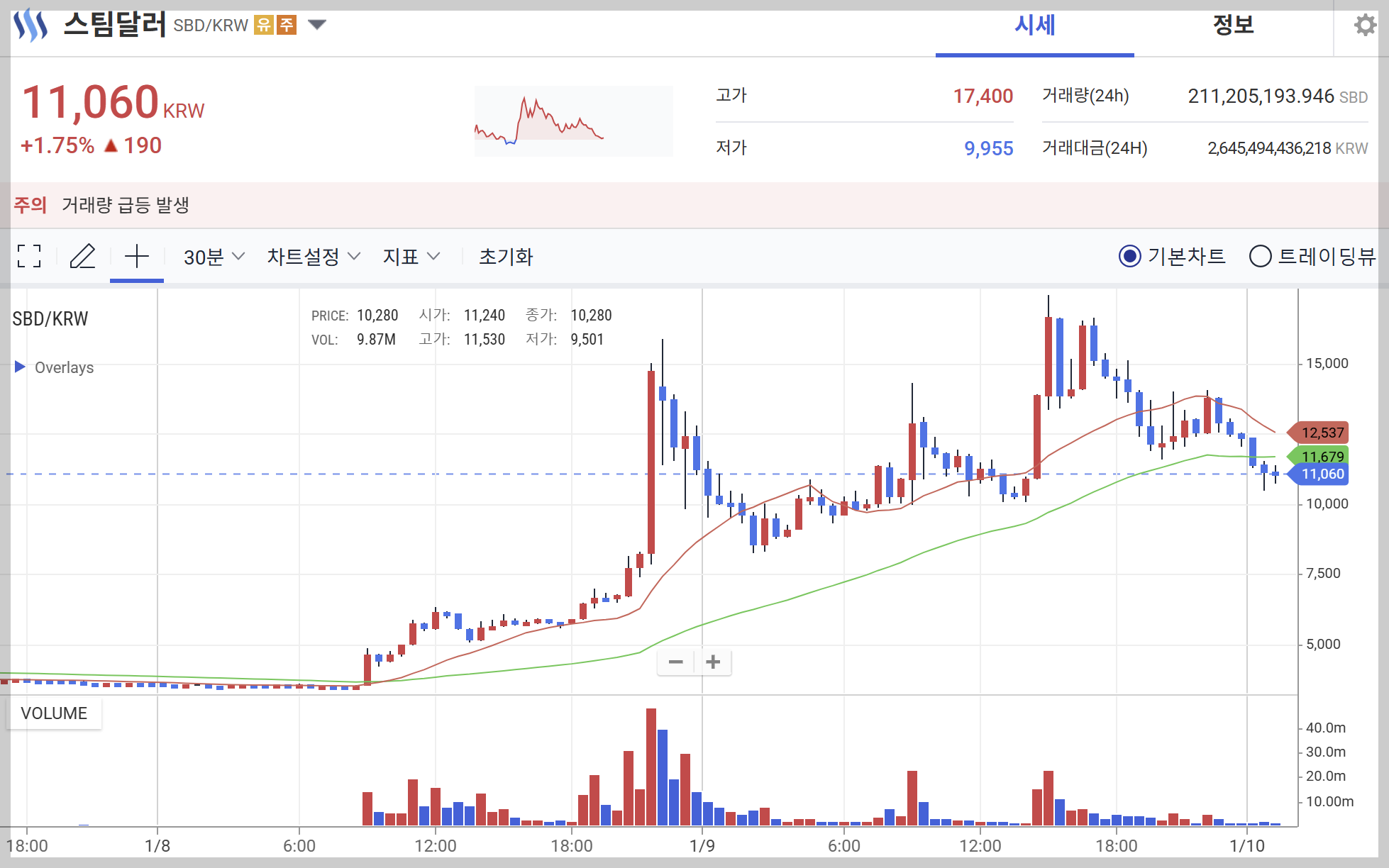 스팀달러는 유의종목 지정 이후 급격한 가격 상승을 보이며 투자자들 사이에서 "유의빔"이라는 별칭을 얻었습니다. 최근 1만 원을 넘어서는 수준까지 치솟으며 단기적 투기 수요가 폭발적으로 증가했습니다. 이러한 급등의 원인은 다음과 같습니다:
