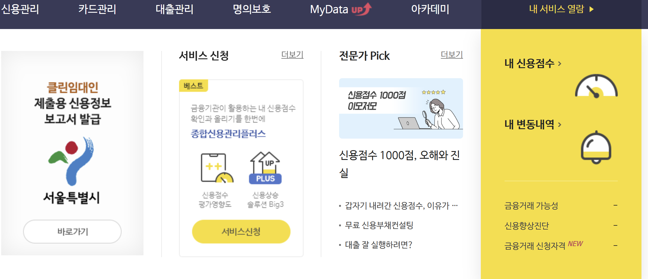 - 추가 서비스: 신용정보 변동 알림 서비스를 통해 신용등급의 변화를 실시간으로 알림받을 수 있습니다.