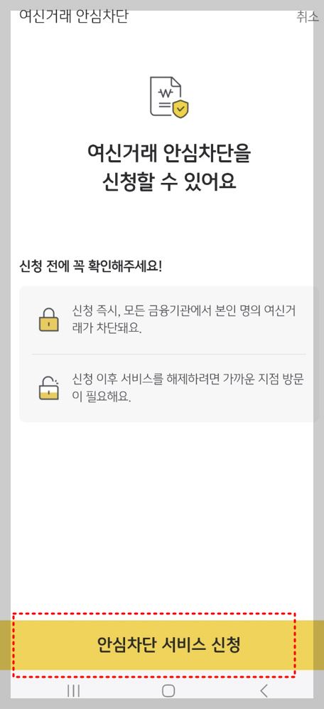 지금 이 순간에도 나도 모르게 금융정보가 노출될 수 있는 만큼, 여신거래안심차단서비스를 통해 금융 거래를 원천 차단하고, 유심보호서비스를 통해 단말기 복제를 막는 이중 방어 체계를 갖추는 것이 필수적입니다.