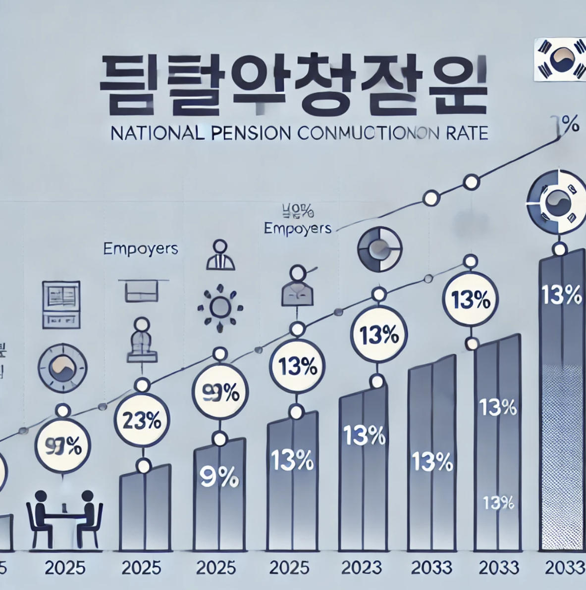 국민연금 보험료율은 현재 9% 수준이지만, 개정안에 따라 2026년부터 매년 0.5%포인트씩 인상되어 2033년에는 13%에 도달합니다. 이로 인해 월급 300만 원을 받는 직장인의 경우, 현재 27만 원 내던 보험료가 8년 후에는 39만 원까지 올라갑니다.