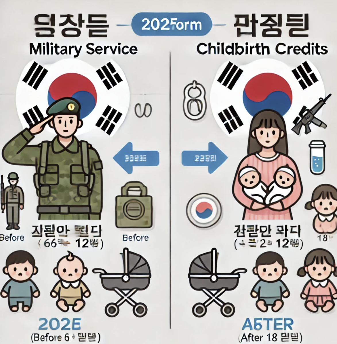 - 군 복무 크레딧: 기존 6개월 인정 → 12개월로 확대
