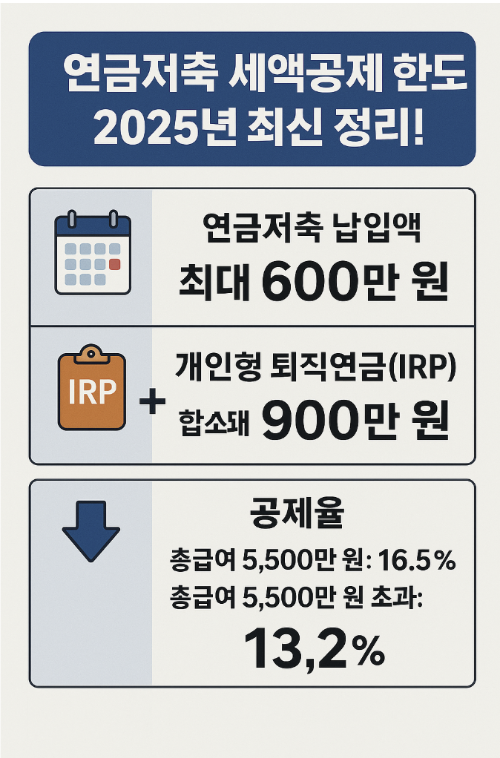 2025년 연금저축 세액공제 한도는 고소득자든 중소득자든 반드시 챙겨야 할 재테크 수단입니다. 600만 원 + IRP 300만 원 조합으로 최대 148만 원까지 세금을 환급받을 수 있다는 건, 단순한 절세를 넘어 노후까지 준비할 수 있는 혜택이죠.