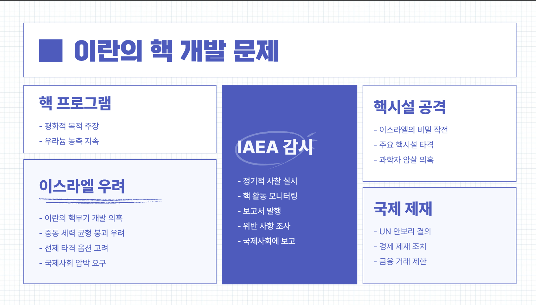 핵개발 | 이란의 핵무기 개발 시도와 이스라엘의 선제공격 |