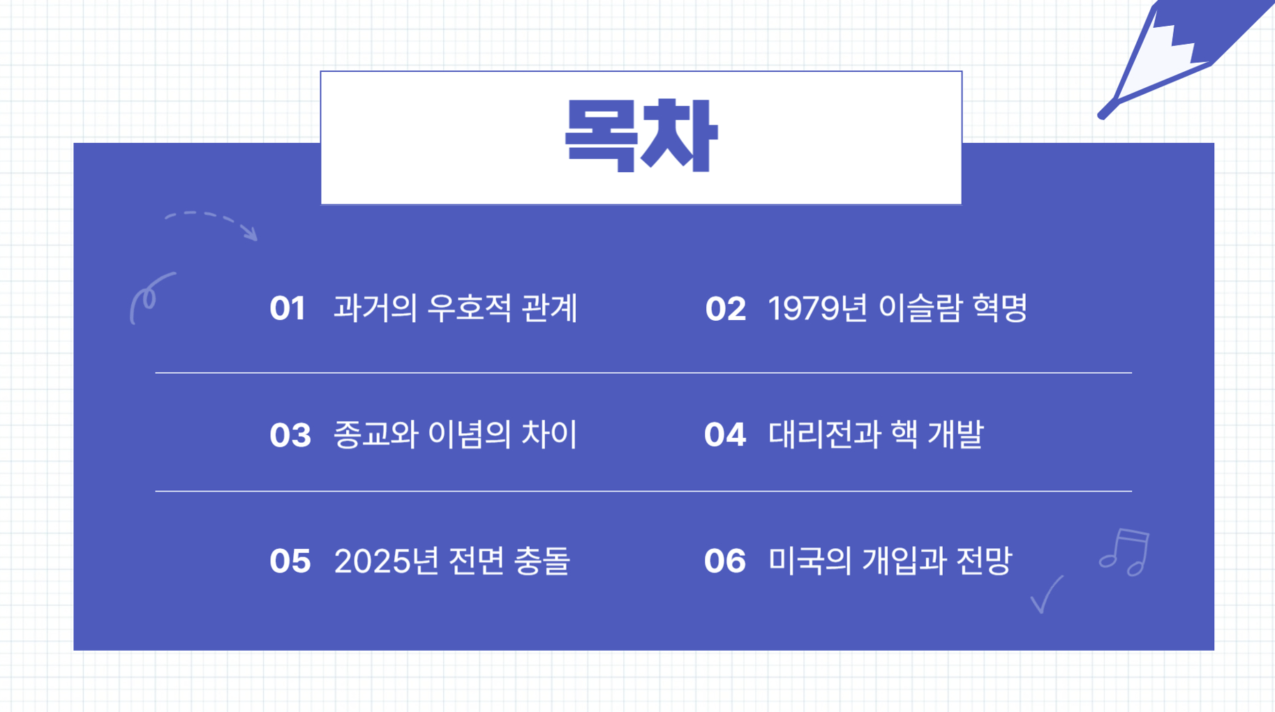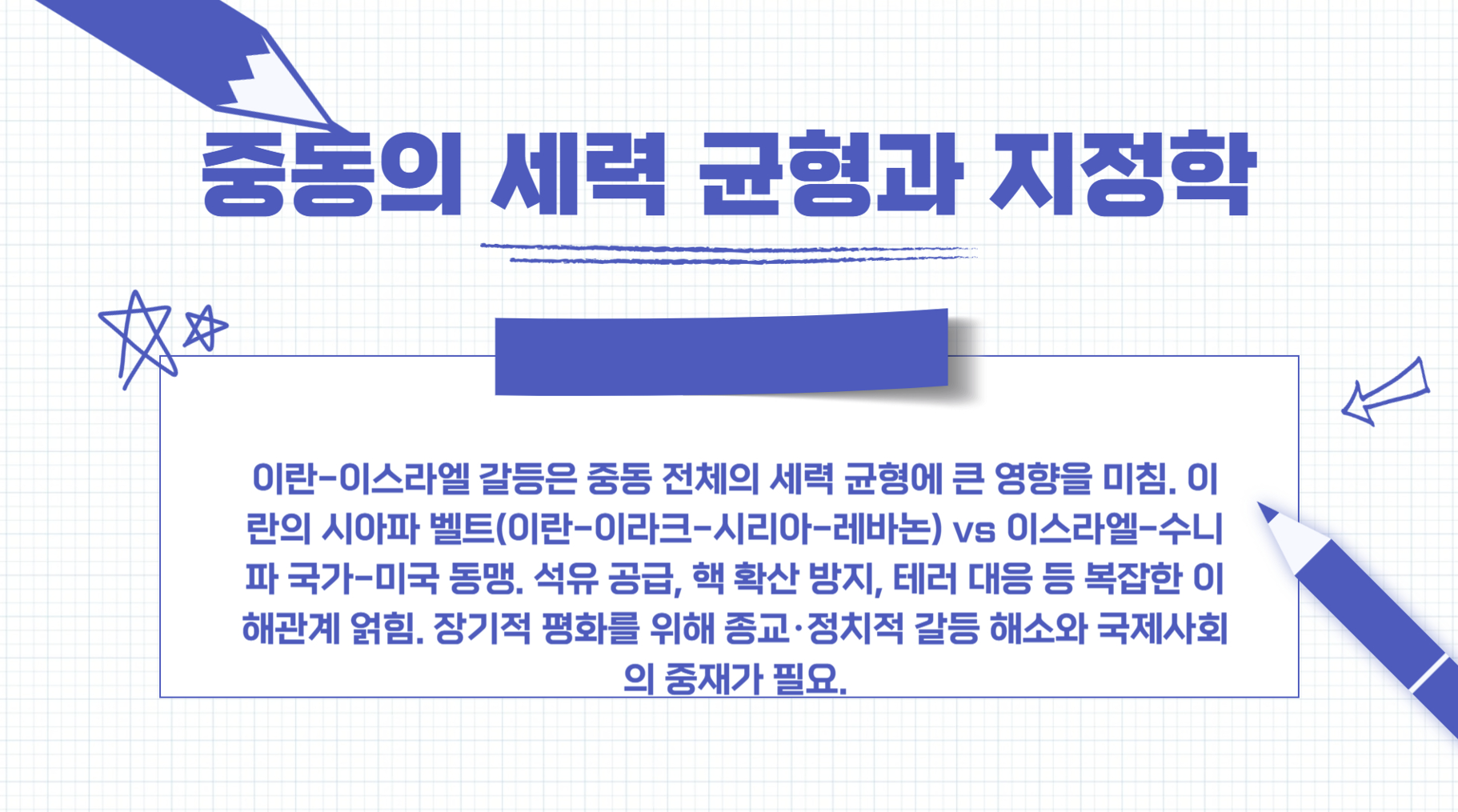 이 갈등은 단순히 두 나라만의 문제가 아니라, 이란과 이스라엘의 갈등은 단순한 국지적 분쟁이 아닌, 중동 전체의 안보와 국제정세에 큰 영향을 미치는 초민감한 이슈입니다. 특히 이란 이스라엘 전쟁 이유를 제대로 이해하는 것은 앞으로의 중동 정세와 국제 외교 흐름을 파악하는 데 필수적입니다.중동 갈등이 언제 끝날 수 있을지는 아무도 예측할 수 없습니다. 하지만 이 복잡한 퍼즐을 하나씩 이해해 나가는 것이 세계 정세를 보는 눈을 넓히는 첫걸음이 될 것입니다.