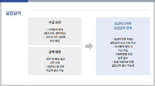 - 임금피크로 평균임금이 낮아지면 실업급여 지급액도 줄어들 가능성