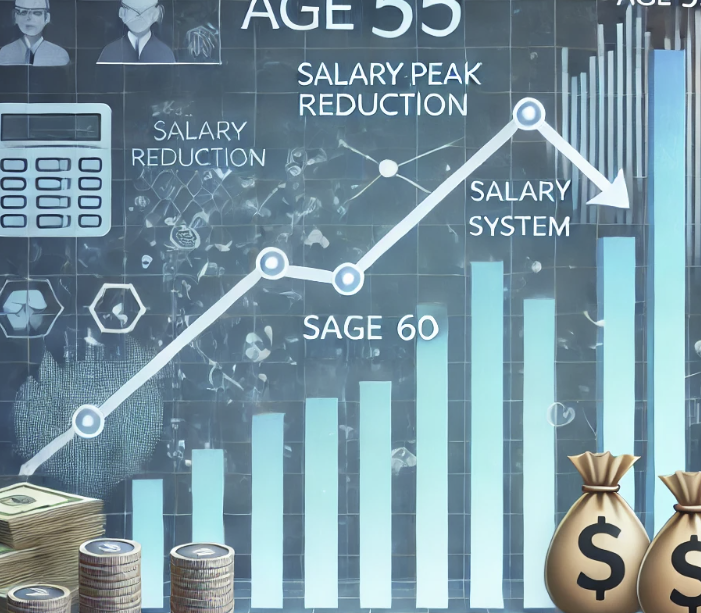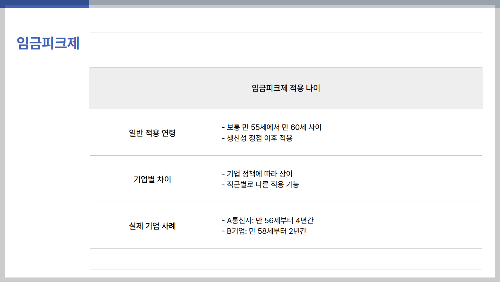 - 기존 정년을 유지하면서 특정 연령 이후 임금을 삭감하는 방식