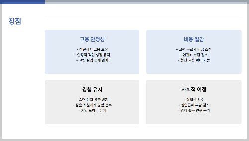 - 고령 근로자의 고용 안정과 기업 비용 절감 효과가 있음
