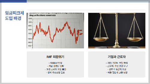 한국에서 임금피크제가 본격적으로 도입된 계기는 1998년 IMF 외환위기입니다. 기업들은 경영난을 극복하기 위해 고령 근로자의 높은 임금을 조정할 필요성을 느꼈고, 동시에 고령 근로자들은 정년 보장에 대한 불안감을 가졌습니다. 이러한 이해관계 속에서 고용 안정과 기업의 비용 절감을 동시에 고려하는 임금피크제가 확산되었습니다.