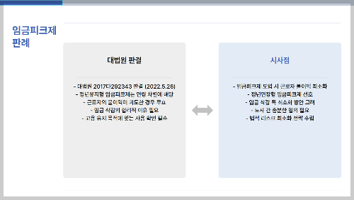 - 정년연장형 임금피크제를 활용하여 법적 무효 판결 가능성을 줄이는 것이 중요