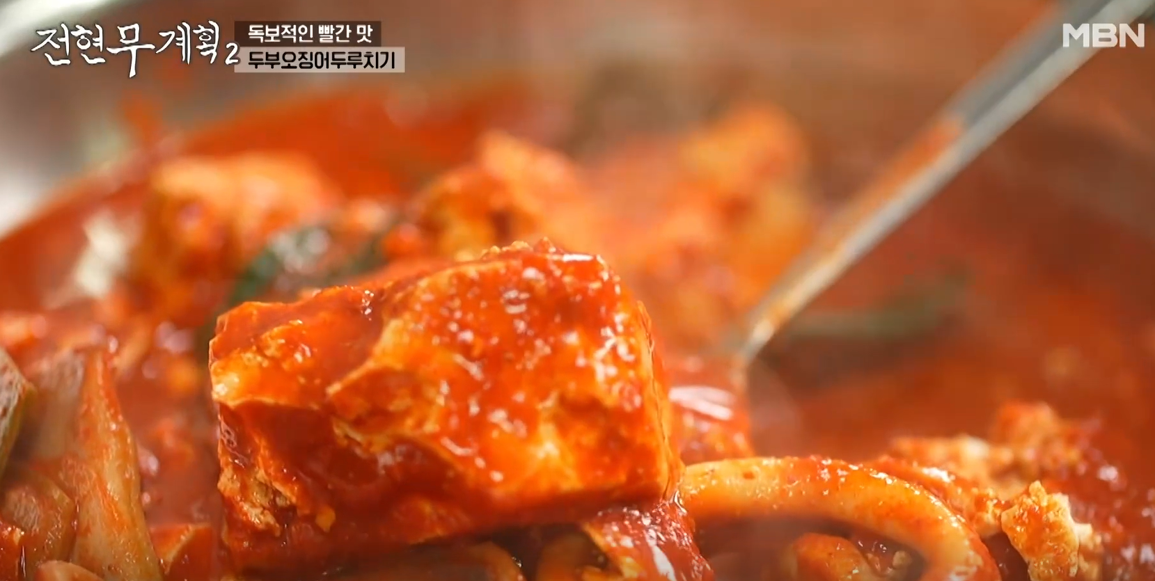 - 쫄깃한 오징어와 고소한 두부가 매콤한 양념과 환상적인 조화를 이룸