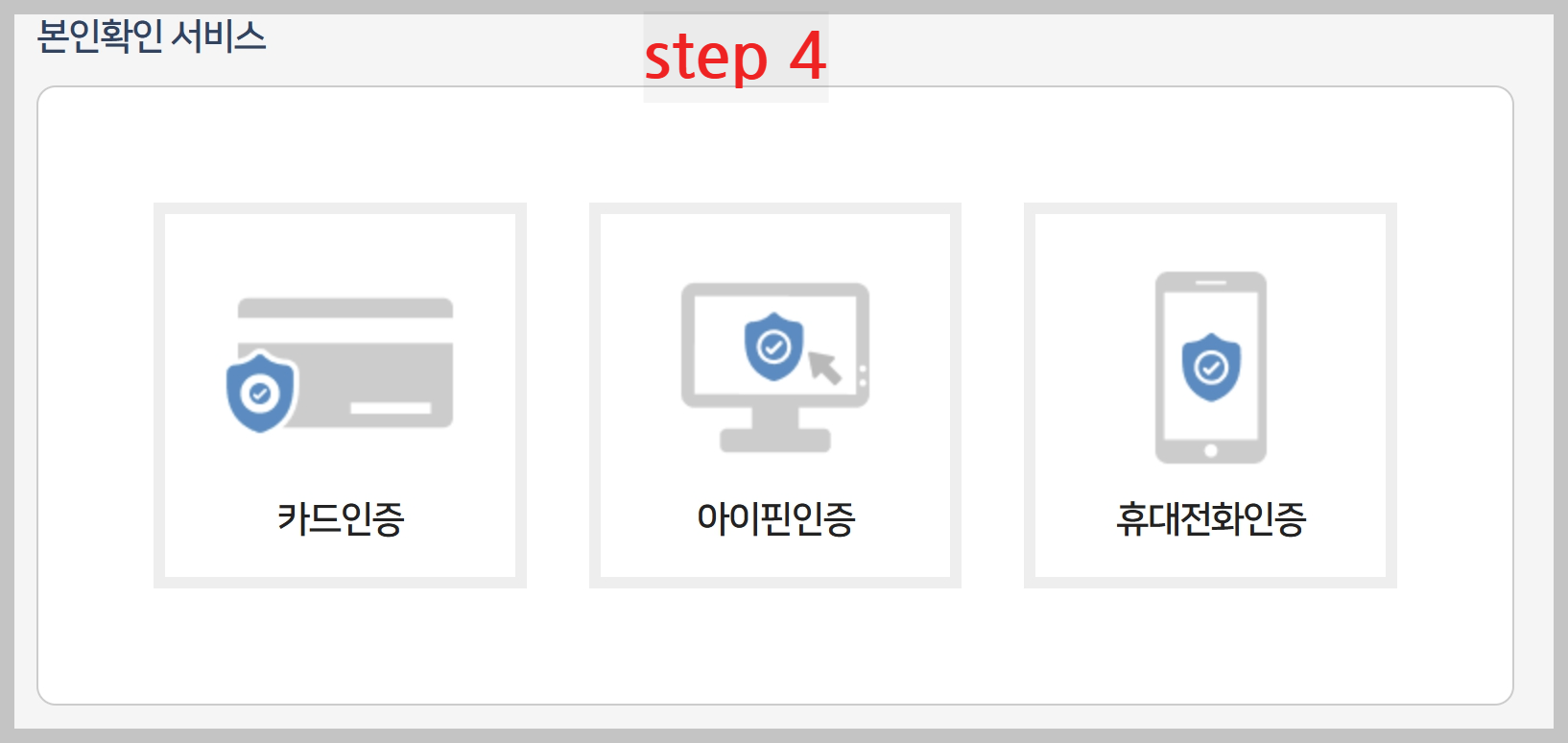 - 공인인증서 또는 휴대폰 인증을 통해 본인 확인 절차를 완료합니다.