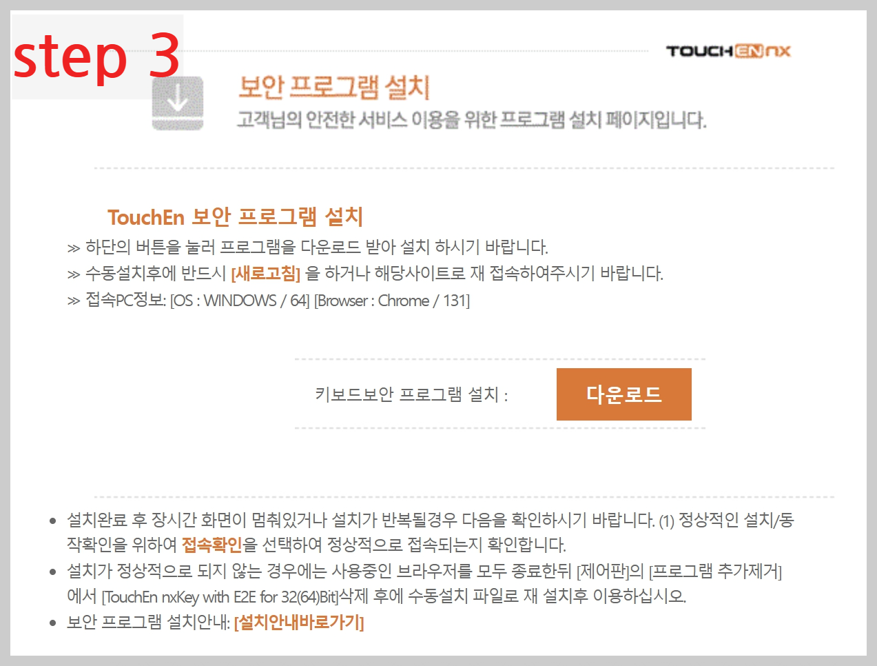 - 모바일 앱을 이용하는 경우, "금융결제원 페이인포" 앱을 다운로드하여 설치합니다.