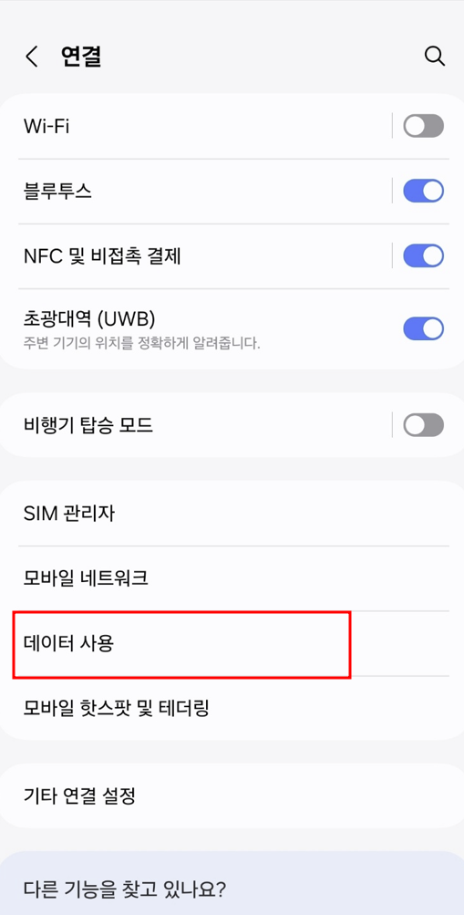 - 안드로이드: 설정 → 연결 → 데이터 사용량