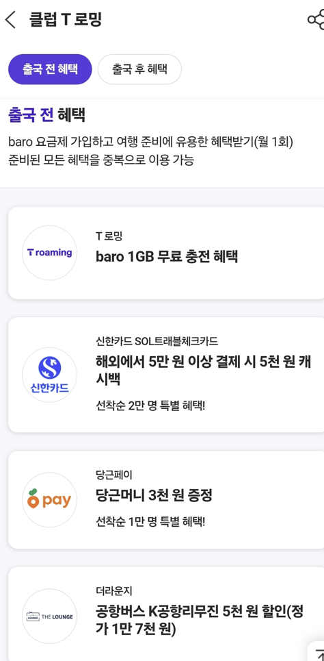 4. 클럽T로밍 할인 혜택 총정리 (2025년 3월 기준)