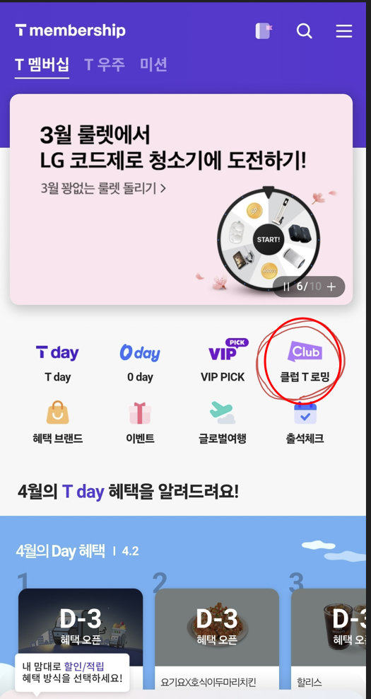- 하단 메뉴에서 [혜택/멤버십] 탭을 선택합니다