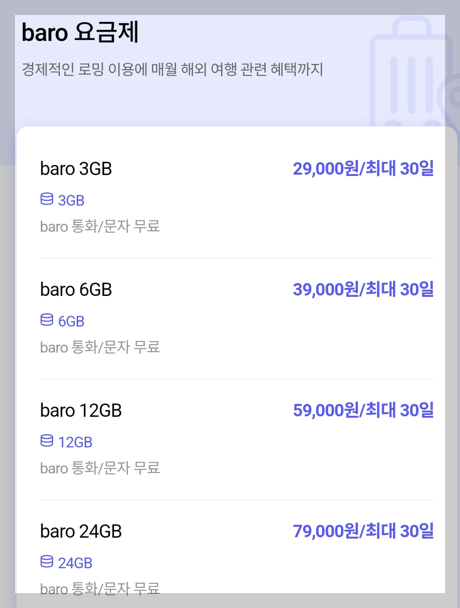 - 추천: 데이터를 많이 사용하는 장기 여행자, 영상 시청이 많은 사용자