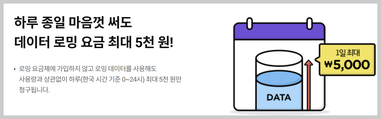 - 특징: 별도 가입 없이 해외에서 전원만 켜면 자동 적용
