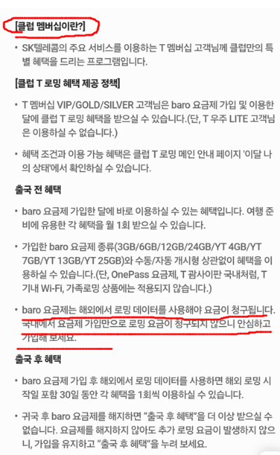 3. 클럽T로밍 요금제 상세 안내