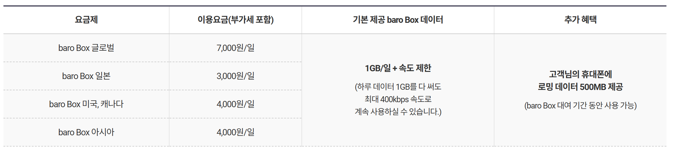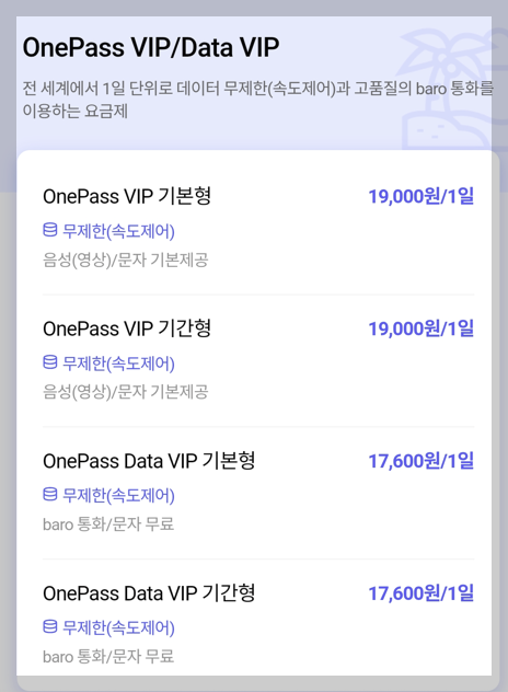 - 가격: 기기별, 국가별로 상이 (일 평균 3,000~5,000원)