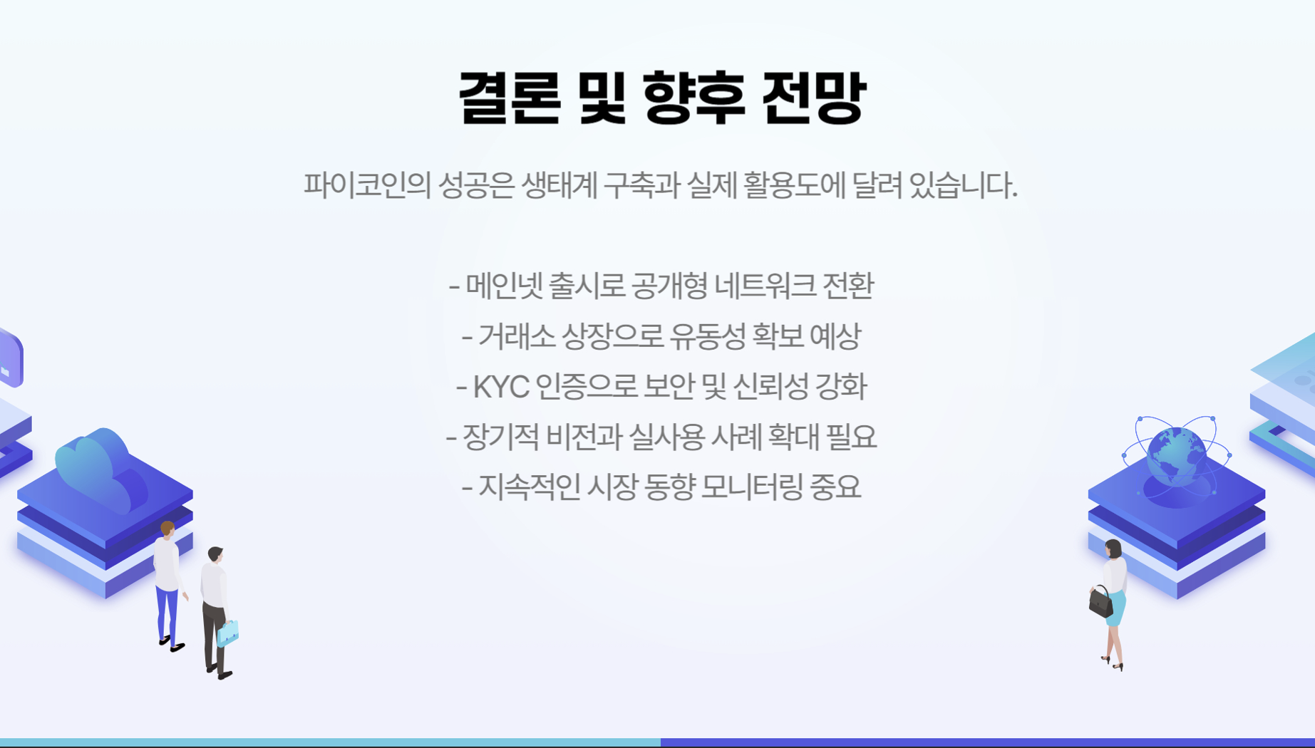 4. 규제 및 법적 이슈: 각국의 암호화폐 규제 정책이 파이코인의 글로벌 확산에 영향을 미칠 것입니다.