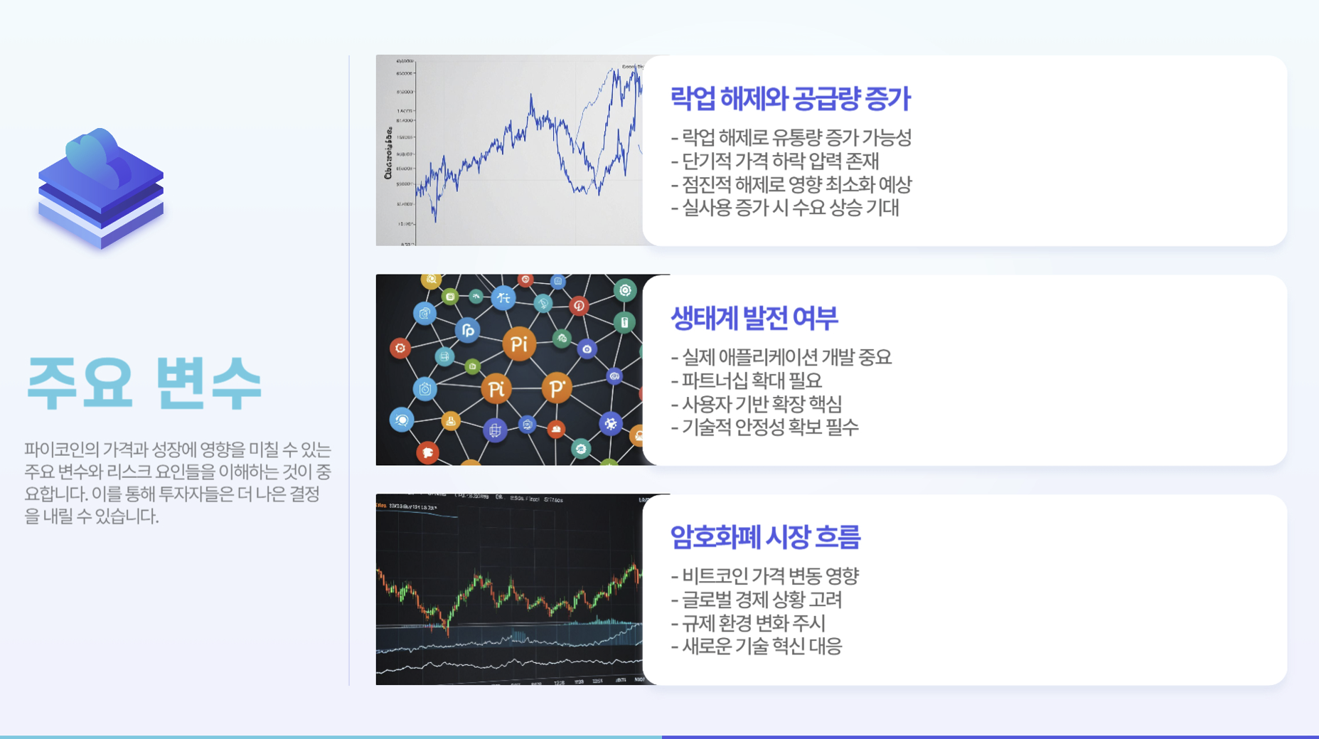 3. 암호화폐 시장의 전반적 흐름: 글로벌 규제 변화 및 경제 상황이 파이코인의 장기적 가치에 영향을 미칠 것입니다.