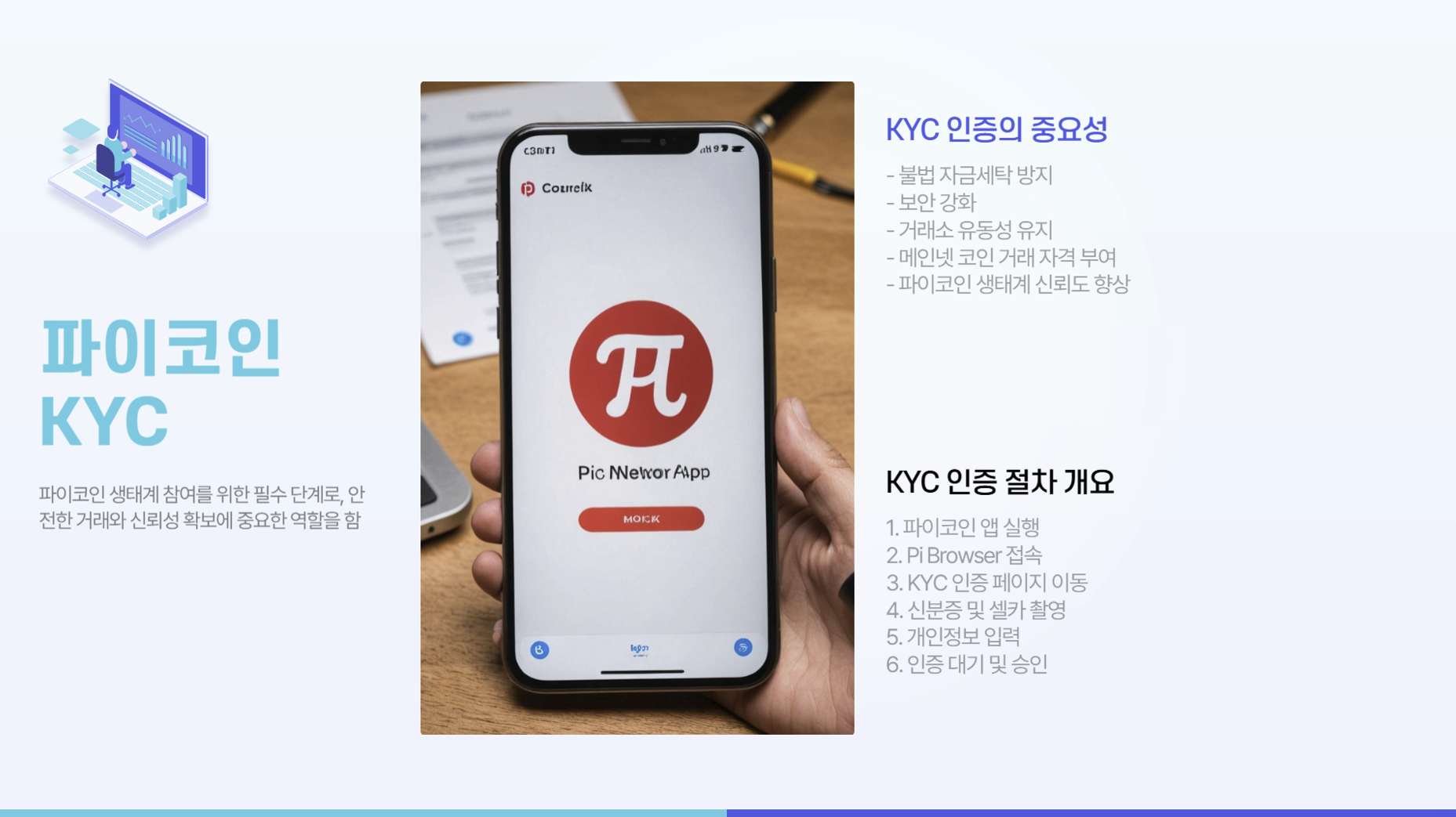 파이코인을 거래소에서 활용하려면 KYC(신원 인증)를 반드시 완료해야 합니다. 이는 불법 자금세탁 방지 및 보안 강화를 위한 절차이며, 거래소의 유동성과 안정성을 유지하는 데 중요한 역할을 합니다. 또한, KYC 절차를 완료한 사용자만 메인넷 코인을 거래소에서 거래할 수 있으므로, 초기 유통량에도 영향을 미칠 수 있습니다. - 유동성 확보