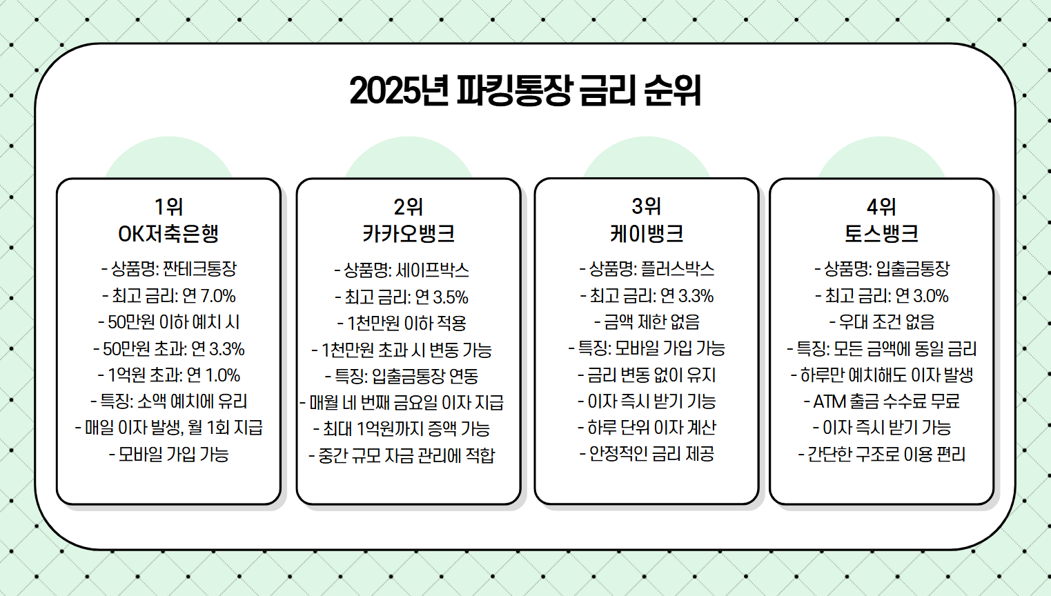 2. 2025년 파킹통장 금리 비교 (최신 순위)