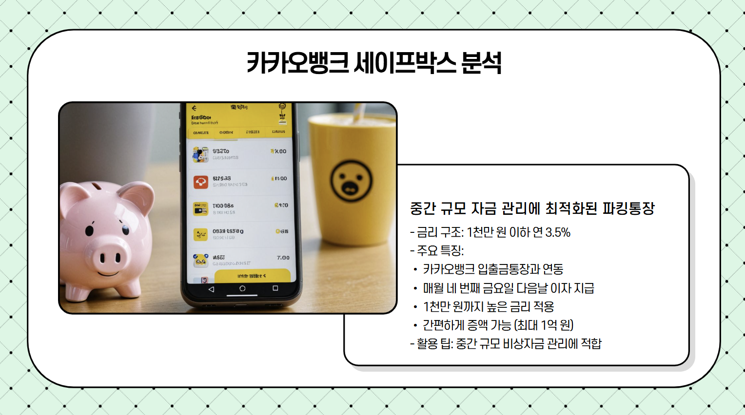- 중간 규모 자금을 안정적으로 관리하고 싶다면? 👉 카카오뱅크 세이프박스 (연 3.5%)