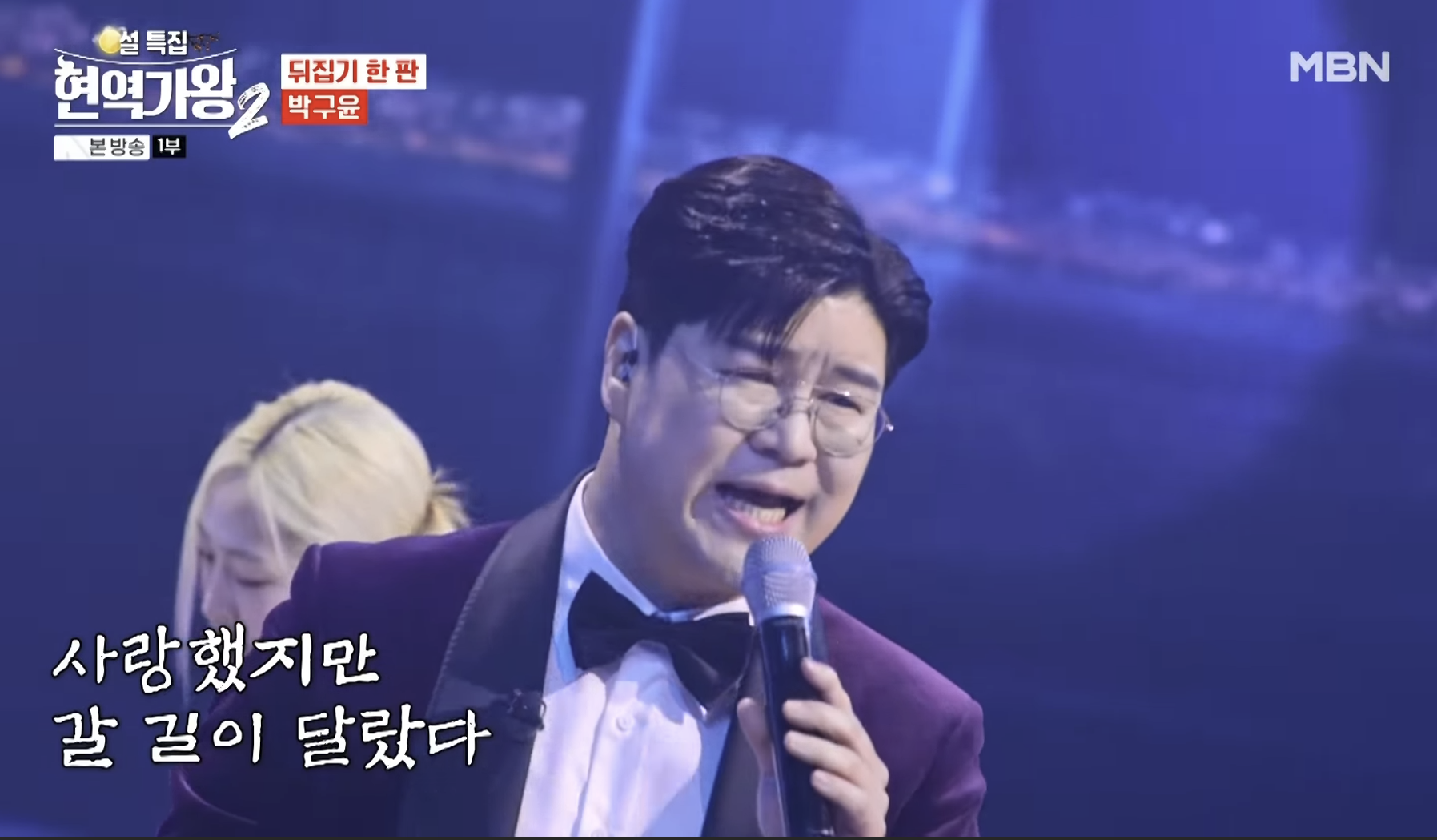 박구윤은 ‘차표 한 장’을 선곡하여 안정적인 가창력과 깊은 감성을 전달했지만, 무대에서 특별한 임팩트를 남기지 못했습니다. 기본적인 가창력은 탄탄했지만, 국민 판정단 점수에서 밀리며 아쉽게 탈락했습니다.